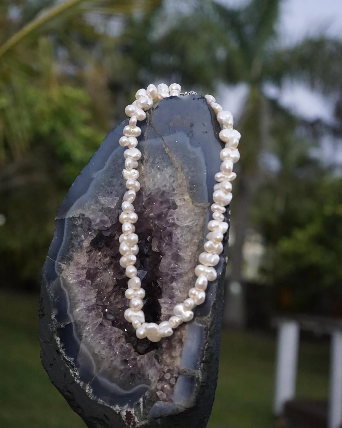 Elegant and timeless, this handcrafted 16" necklace features luminous freshwater pearls accented with 14K gold-filled findings for a luxurious yet natural look. Designed and created on the island of Maui, each piece reflects the beauty of island life and the spirit of