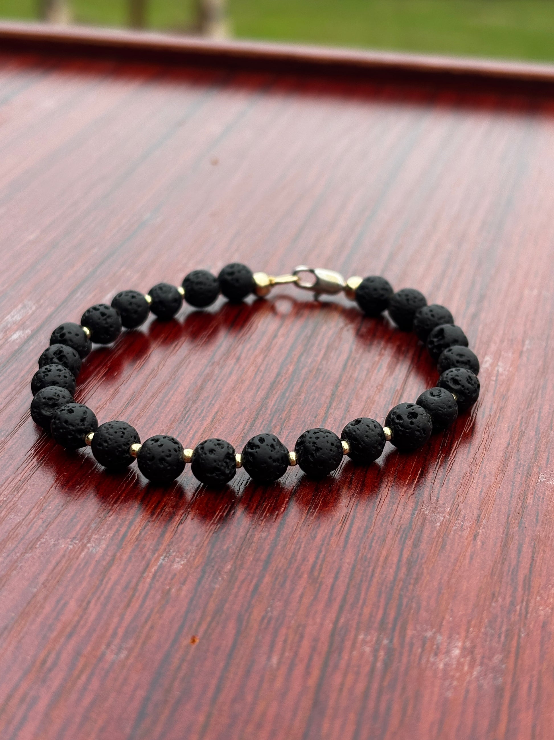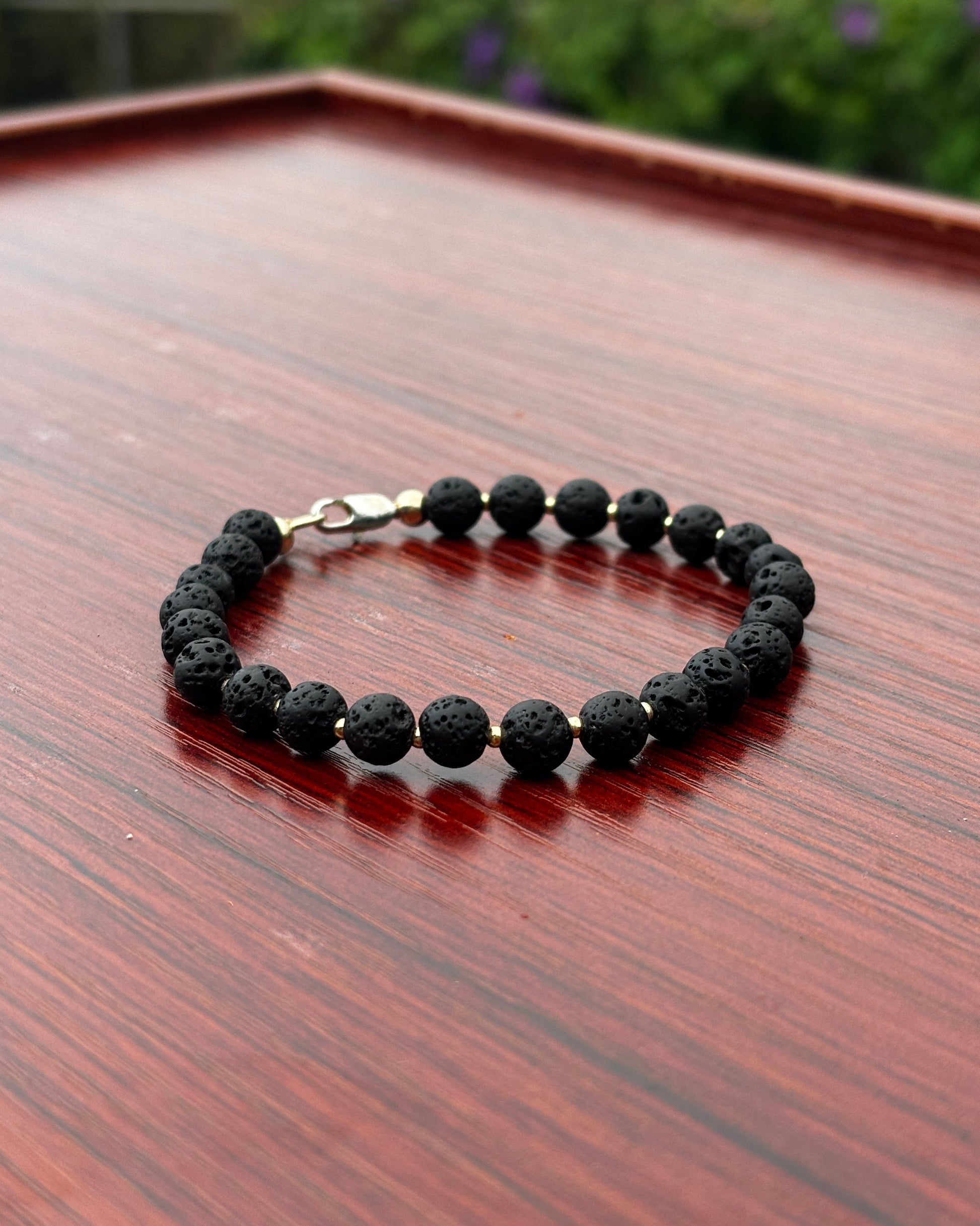 The Kala is a piece which consists of lava rock beads and 14k Gold Filled Findings. For the streets to the beach