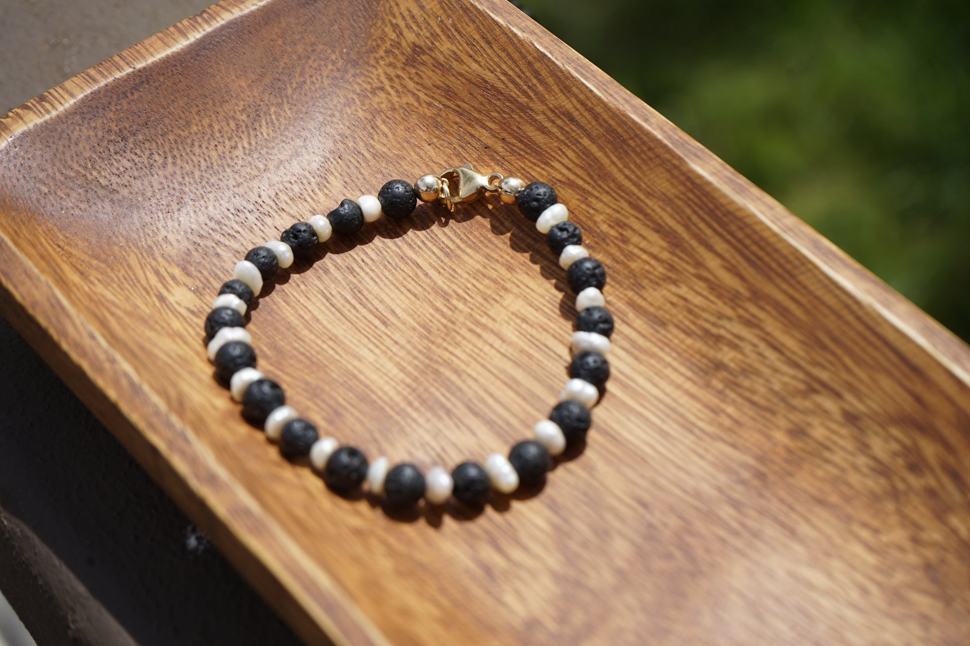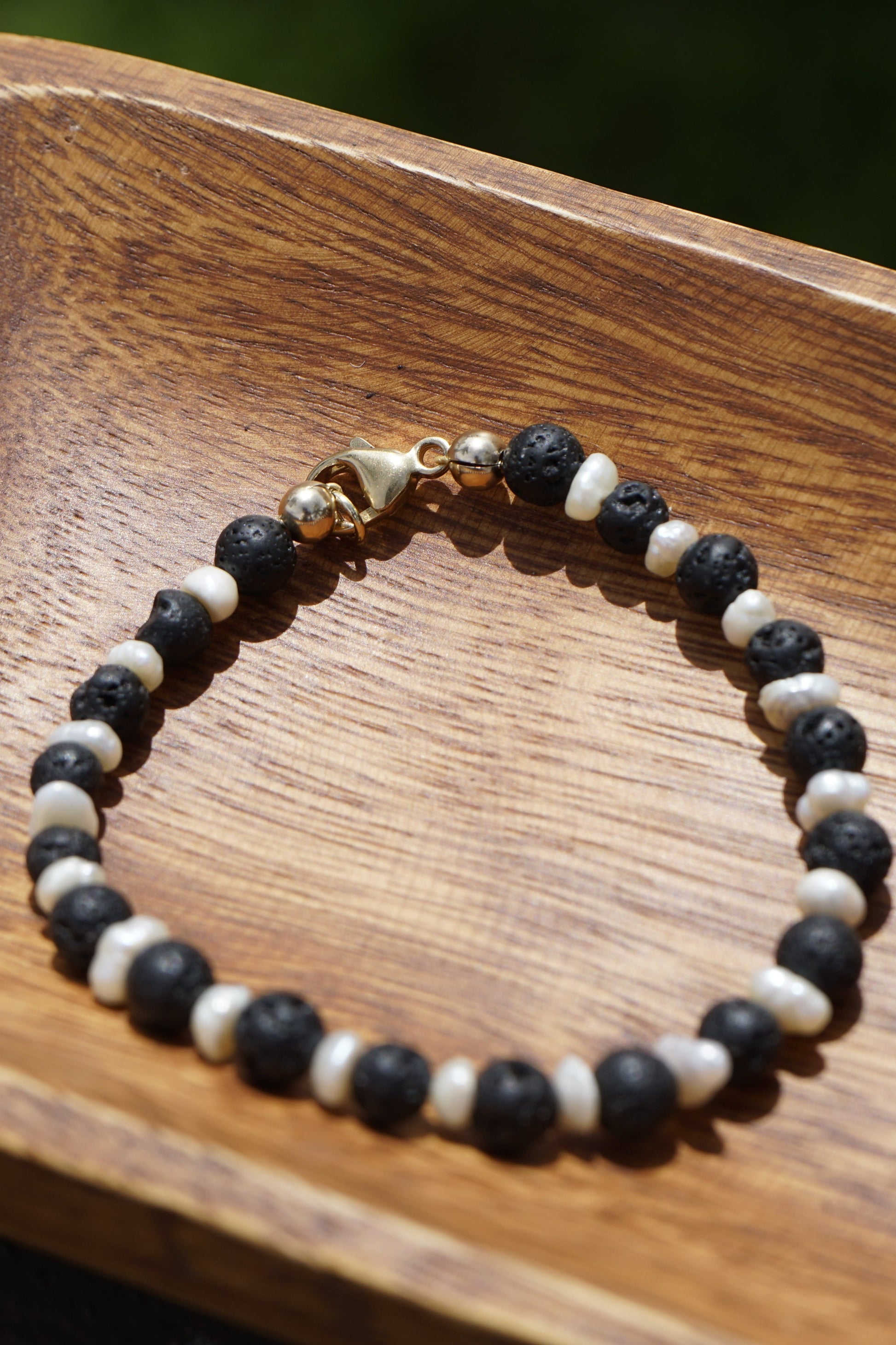 Made with varying patterns of lava beads and keshi pearls with 14k Gold Filled Findings which last long and stay on.